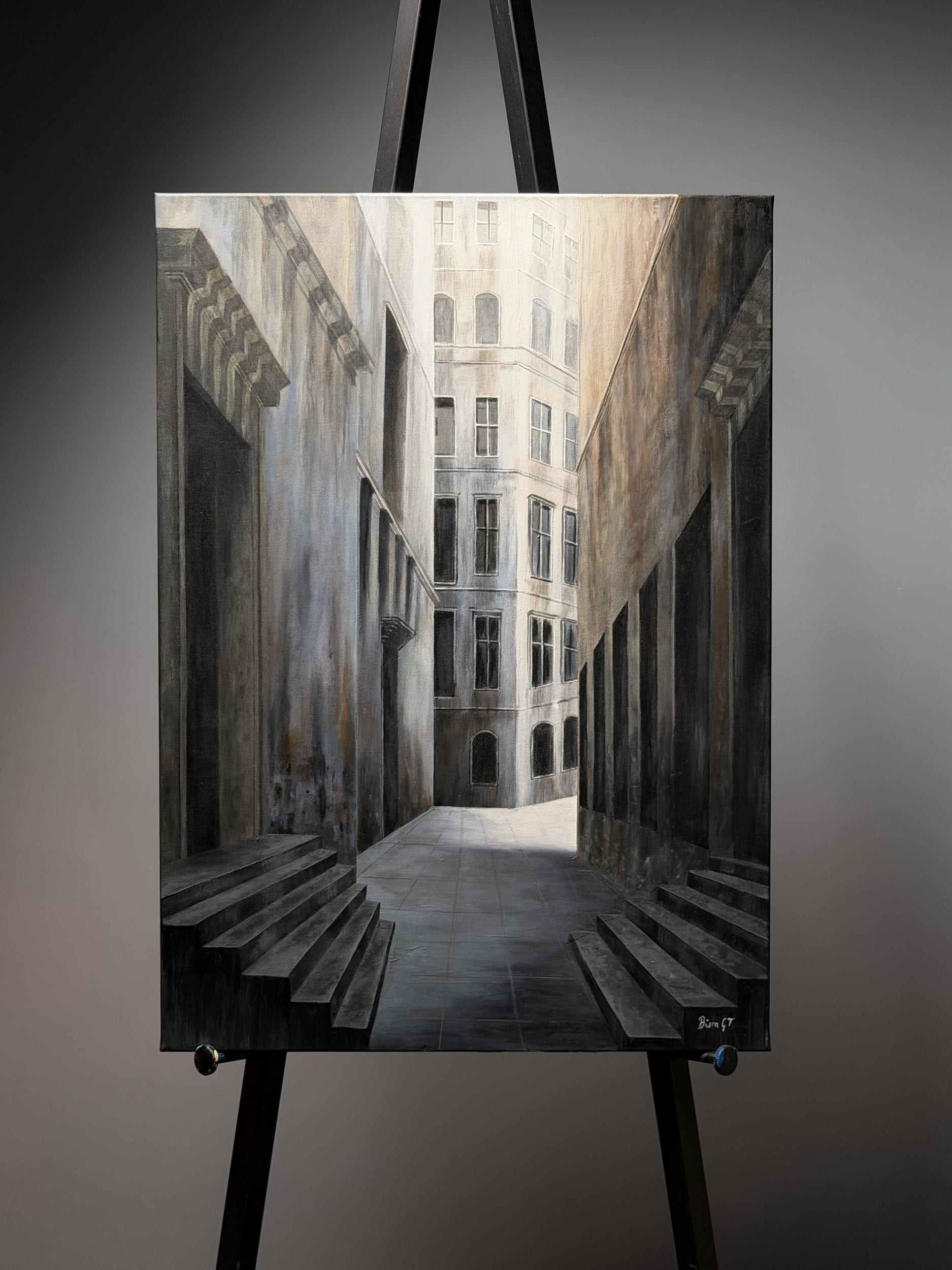 The studio is where the work slowly takes form. It is a space shaped by repetition, focus, and quiet observation. Paintings develop over time, through layers, revisions, and pauses. — Some works remain unfinished for long periods, waiting to be returned to. This space allows the process to stay open, patient, and attentive.