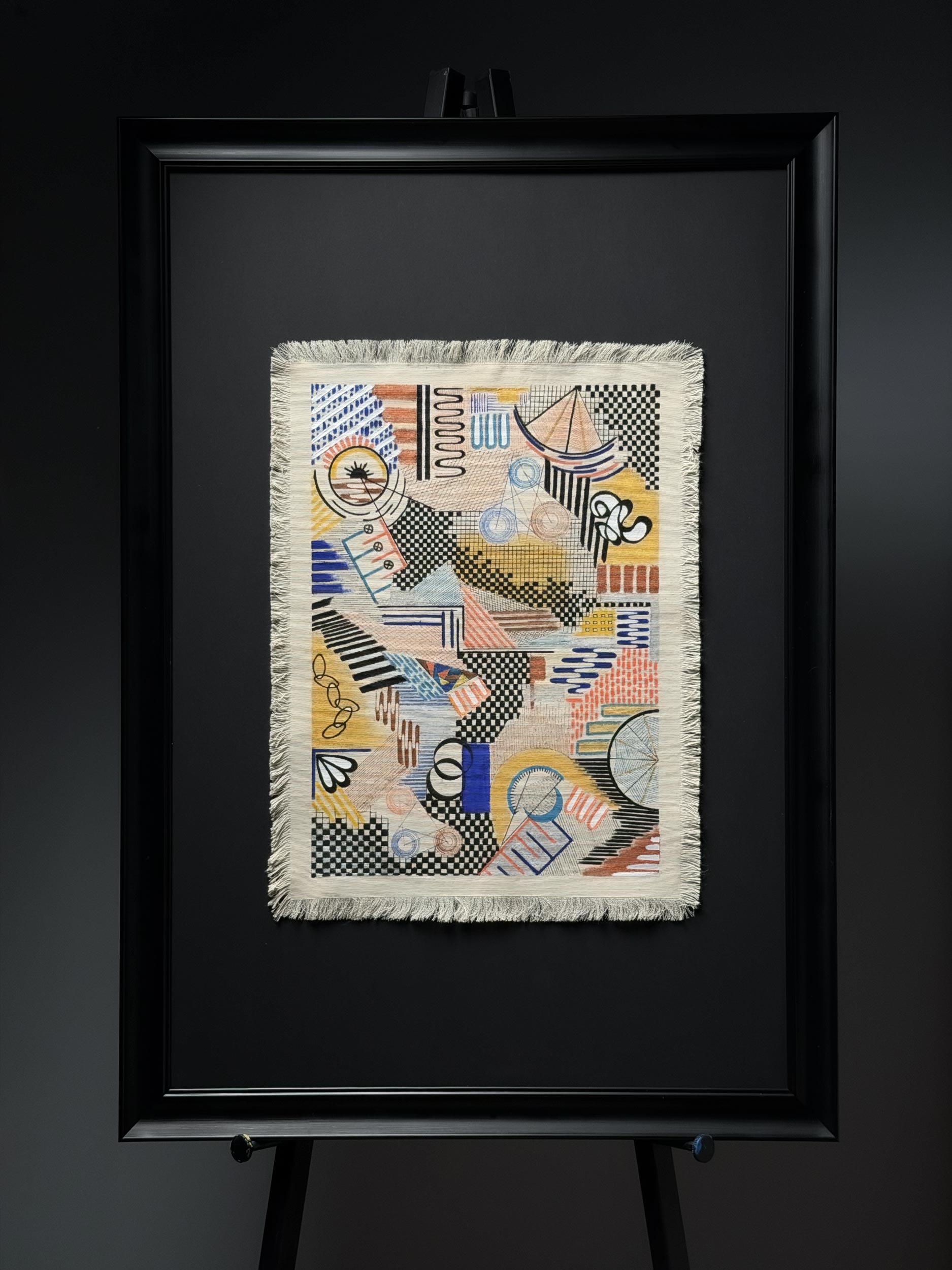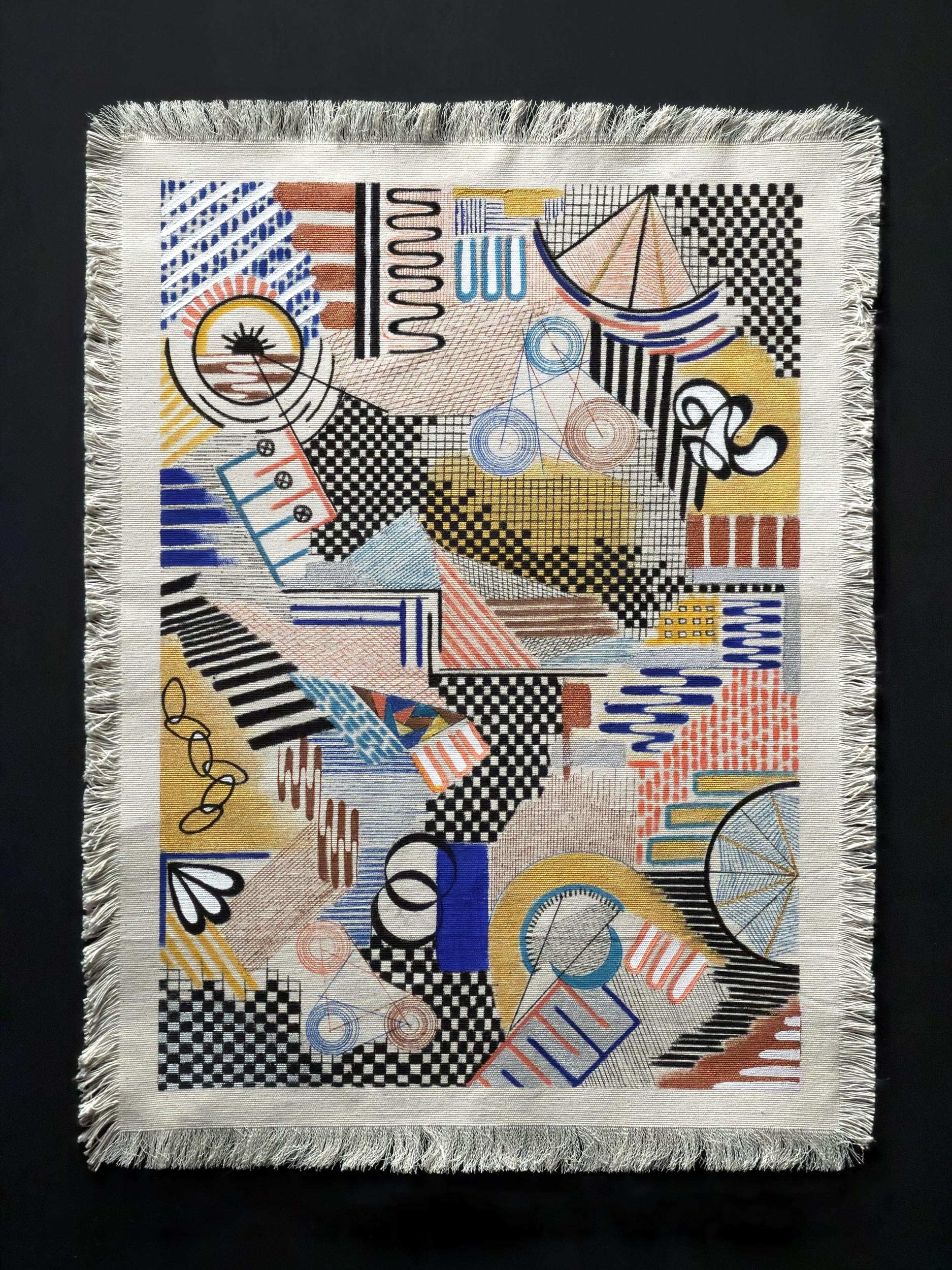 In this weaving, I recounted the endless war between the rigid rules life imposes on us and the desire for liberation within us. The black and white grids and orderly lines represent the perfect order and frameworks expected by society. However, as an artist, I do not accept these narrow molds.