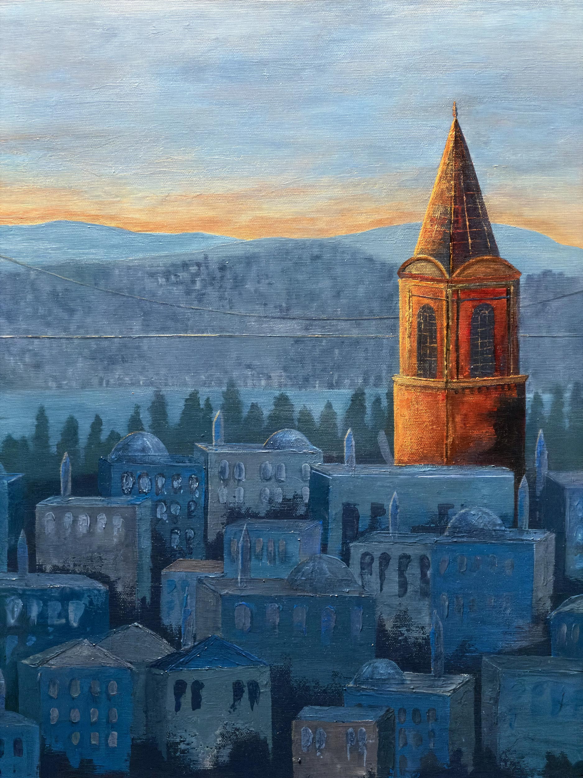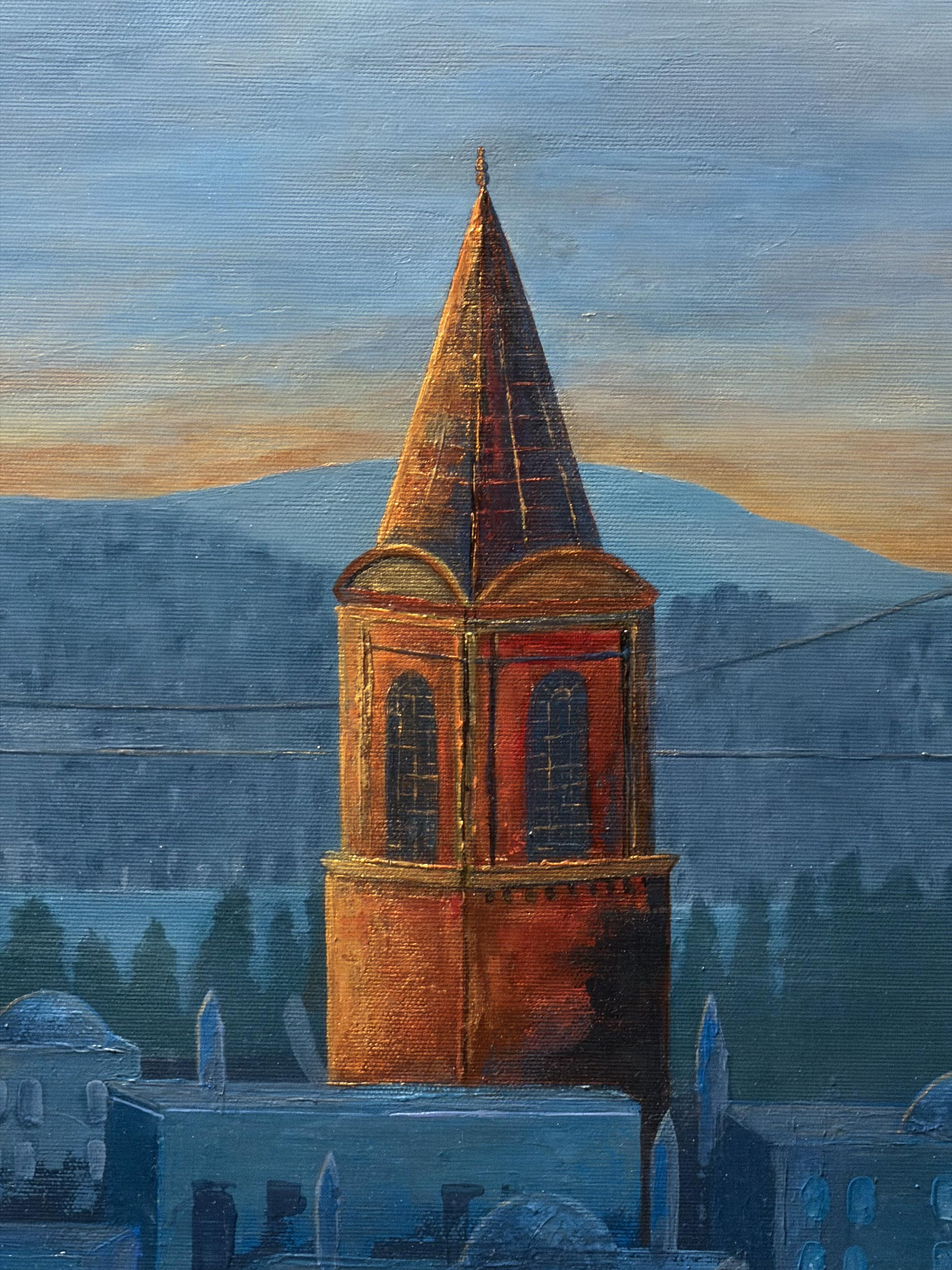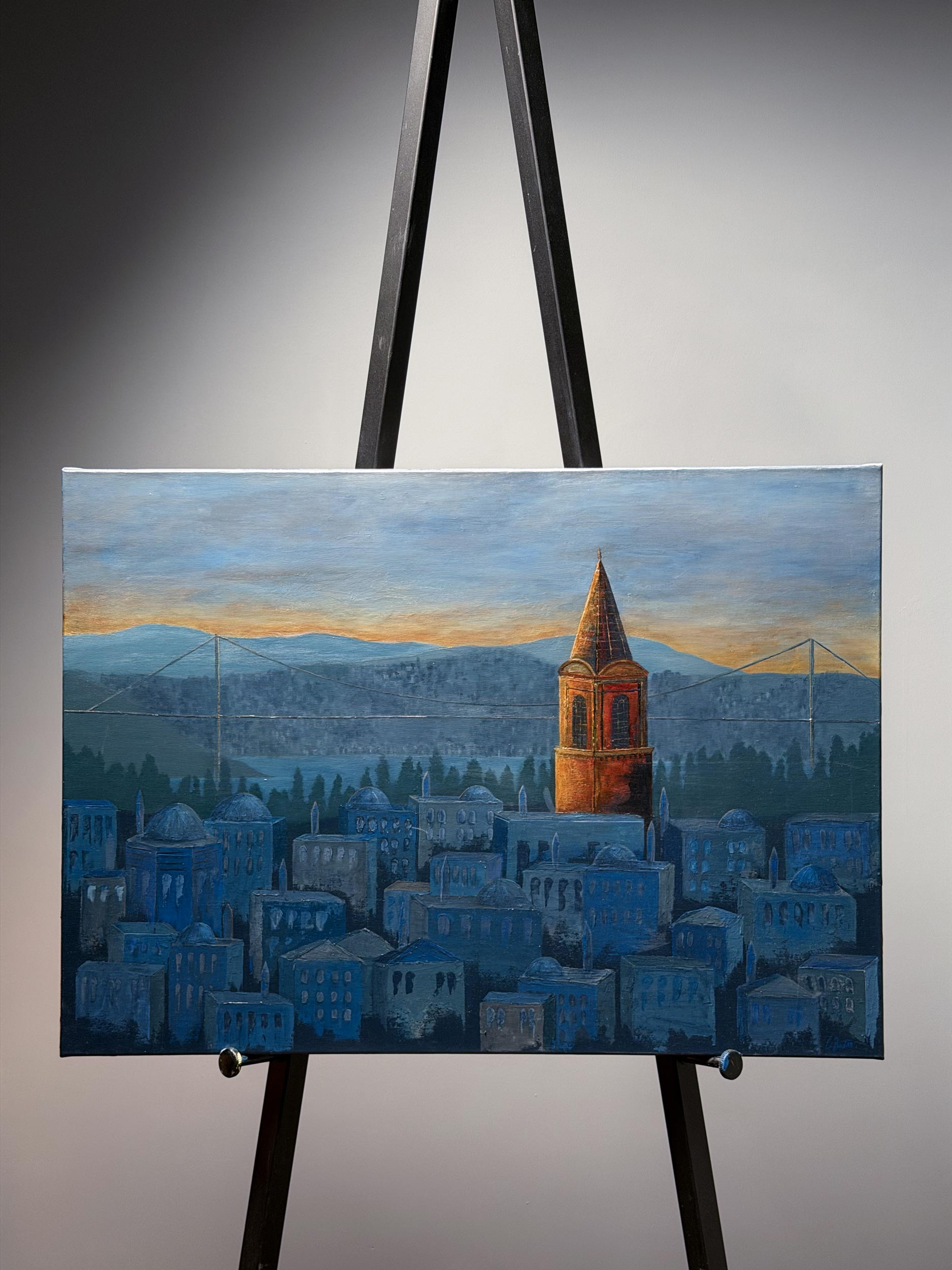 The tower, gliding through a blue haze, is not merely an architectural structure but continues to overlook the waters of the Bosphorus as the conscience of the empire.