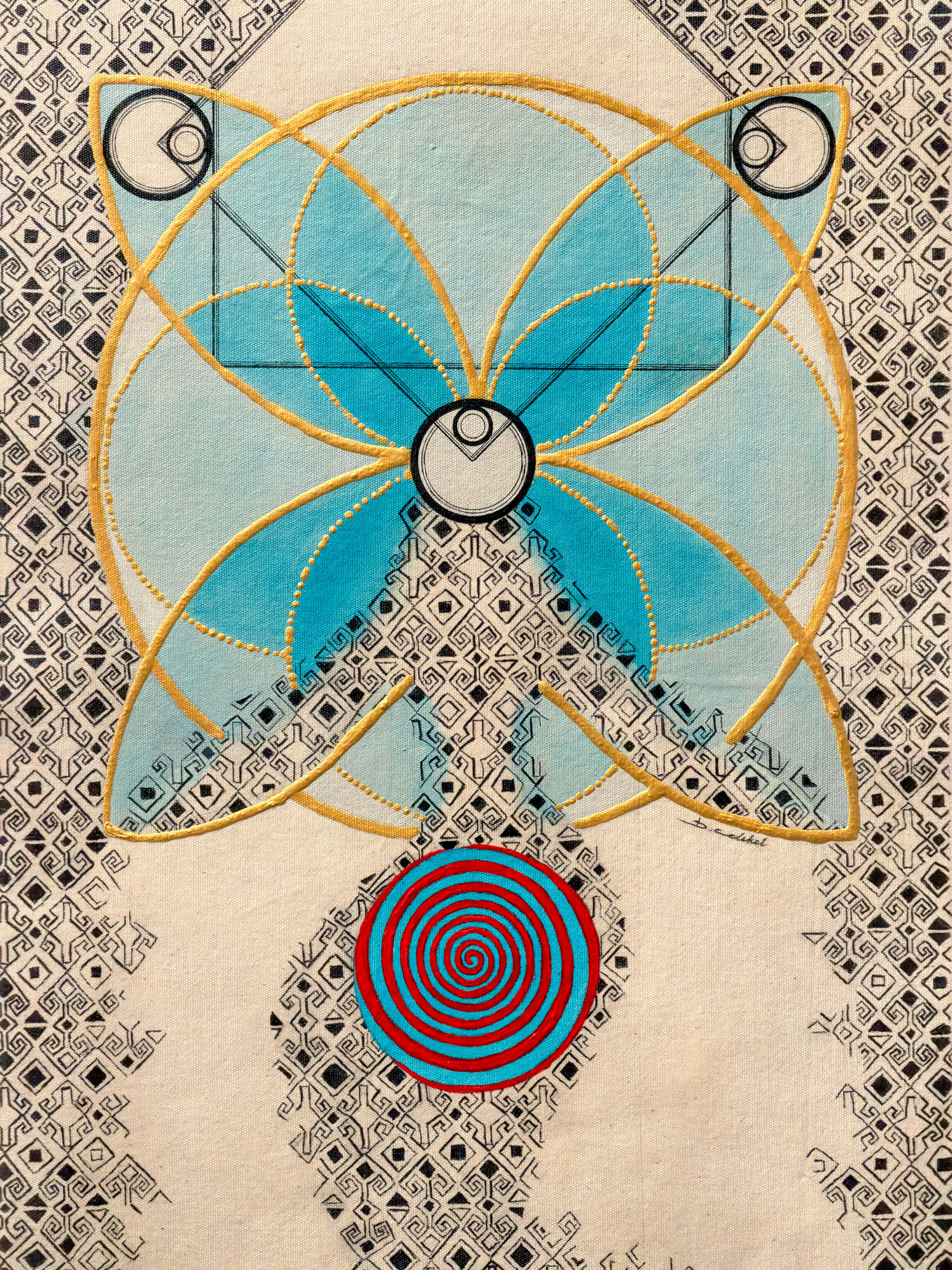 Acrylic and ink on canvas fabric