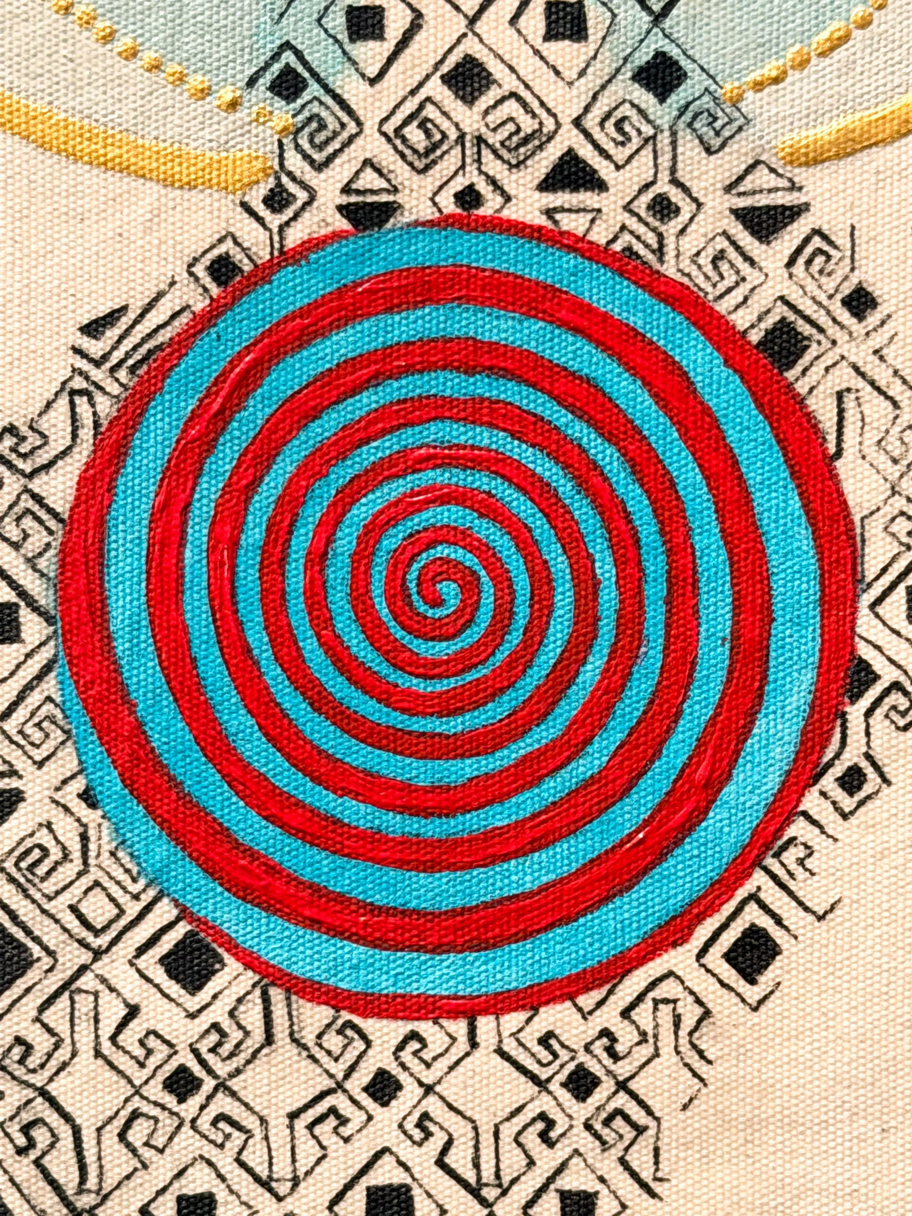 The spiral form located in Umay Ana's womb area focuses on creation, birth, and the cycle of life. While the "hands on hips" motifs forming the figure express productivity and fertility, the "eye" motifs placed among the patterns serve as a reminder of man's role as a protector of nature. The combination of all these symbols emphasizes that man is an inseparable part of the whole who respects its cycle, rather than dominating nature.